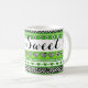 Design rayé mignon et amusant, avec de jolies fleurs, des coeurs zébrés, des rayures et des points. Joli motif en vert, noir et blanc sur une douce tasse de 16 ans. Entièrement personnalisable, facile à personnaliser avec vos détails, noms, polices et texte. Un cadeau parfait en sweet sixteen.
