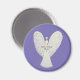 Un ange gardien de lumière blanche a des ailes pliées pour créer un contour en forme de coeur. Les plumes des ailes de l'ange forment aussi des formes cardiaques. Il y a un coeur sur la poitrine de l'ange et un coeur qui plane sur la tête de l'ange comme un halo. Le tableau a été créé à l'aide de crayons d'aquarelle sur papier. Personnalisez cet aimant ange gardien avec votre propre texte et images pour faire des cadeaux d'aimant réfrigérateur ange personnalisé! Les bénéfices de cette vente soutiennent l'association à but non lucratif 501(c)3 DonnaBellas Angels. Pour en savoir plus, consultez le site donnabellasangels.org.