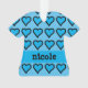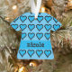 Coeurs bleus adorables sur robe bleu bébé sur l'ornement de Noël pour le premier arbre de Noël du bébé. Personnalisez-le avec le nom de la fille.