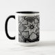 Chic Folk Mug noir & blanc d'inspiration Art avec un motif complexe de coeurs et d'étoiles. Idéal pour toutes les occasions. Une partie de la collection "Coeurs pleins d'amour".