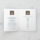 Programme funéraire ordre de service double face bleu simple dans nos coeurs pour toujours programme funéraire. Un programme simple mais élégant remplace simplement les supports de texte et de photo par vos propres trois photos et informations spéciales. La typographie originale et dans nos coeurs toujours design graphique par Sarah Trett pour www.mylittleeden.com (Crédit photo de Guilherme Stecanella sur la photo modèle Unsplash est juste un espace réservé pour vous à remplacer).