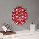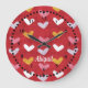 Coeurs pastel sur horloge à mur rouge