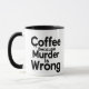 "Handle mornings with dark humor and caffeine. This 'Coffee Because Murder Is Wrong' mug is perfect for coffee lovers who appreciate sarcasm. A funny, relatable gift for coworkers, friends, or anyone who needs coffee to stay sane."