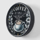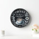 Diese einzigartige Uhr wurde von LeahG entworfen und bietet ein einzigartiges Kaffeekochen-, Kaffee- und Kaffeemaschine-Thema, mit dem Sie Ihre Küche, Ihr Esszimmer und Ihr Café mit einem stilvollen Coffeeservice bereichern können.
