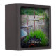 3 croix bondissent avec l'avant de ficelle, photographiée et rentré d'une "tombe" vide avec l'herbe verte s'élevant tout près. Inspiré par mon jardinage et mon amour de Dieu. "je crois que" le souvenir et la boîte de mémoire seront un cadeau de special pour toujours pour ceux de la foi.