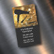 Carte de visite magnétique coiffeur tendance, design en parties scintillant dorée graphique avec outils de coiffure image en format vertical pour coiffeur, salon de coiffure ou professionnel de la beauté.