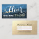 Salon des cheveux / Coiffeur / Coiffeur / Salon de beauté / Maquillage Artistes / Stylistes / Wedding planners / Planificateurs d'événements / Consultants / Boutique Propriétaires / Fashionistas Rendez-vous Modèle de carte de référence d'affaires - Ciseaux d'or Faux modernes sur Motif de vague bleu foncé Grunge Arrière - plan.