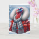 Die Türkei trägt eine rote Jacke und Schal in Schneeflocken. Text ist bearbeitbar.