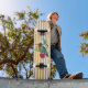 Skateboarddeck mit Colibri und vertikaler Goldstreifen-Abbildung.