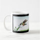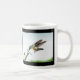 L'image de cette tasse représente un colibri alors qu'elle s'étire pour le nectar dans une fleur. La vitesse d'obturation rapide a gelé les ailes au sommet de leur arc.