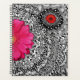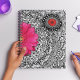Une belle planificateur avec des motifs de gribouillis dessinés à la main et des fleurs rose et rouge vif.