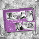 Grande famille, photo collage simple carte de vacances en violet clair avec texte blanc. Cinq modèles photo - certains attirés par l'intérêt - sont faciles à customiser avec des photos des enfants, des animaux de compagnie, du nouveau bébé, des photos de vacances ou tout ce que vous choisissez. Choisissez des photos avec la même orientation pour les formes rectangle et choisissez des photos centrées pour le carré. Inclure deux lignes de texte de salutation et une signature. Reverse est aussi violet solide dans une ombre plus foncée.