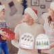 Design botanique vintage rétro en typographie verte et rouge sur arrière - plan blanc avec 7 collage photo de famille vous souhaitant un Joyeux Noël avec nom de famille personnalisé. Parfait pour partager avec votre famille cette période de vacances et pour votre décoration de Noël.