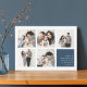 La carte de collage photo Hanoukka moderne comprend cinq photos carrés disposées dans une grille, avec votre message de vacances personnel et les noms en blanc sur bleu marine clair fumée en bas à droite. Un design Hanoukka simple et minimaliste qui montre vos photos préférées.