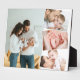 Créez votre propre plaque photo bébé avec 4 de vos photos préférées. Le modèle photo est mis en place pour créer un collage photo avec une photo principale, légèrement recouvert des trois autres photos en zigzag vertical. Vos images sont affichées en format portrait et paysage avec des cadres blancs.