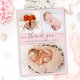 Baby Birth Blush Faire-part Rose Cartes de Collage Photo. Elégante faire-part de naissance minimaliste mignonne avec 3 de vos photos de bébé préférées sur le devant, avec un joli texte écrit à la main "merci" dans un script de calligraphie tourbillonnant avec queues d'écharpe sur arrière - plan de couleur rose vif. Ajoutez le nom de votre bébé sur le devant et les statistiques de naissance. À l'arrière, il y a de l'espace pour votre message de remerciement et une photo de bébé. Vous pouvez facilement le personnaliser.