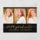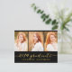 Carte postale moderne branchée invitant votre famille et vos amis à la fête de remise des diplômes de votre fille. Collage simple | Invitation de la fête des diplômés pour 2014. Design par Elke Clarke © Visitez notre boutique www.zazzle.com/monogramgallery* pour plus de design et de styles. Une simple typographie de feuille d'or manuscrite écriture de police de texte superposition (effet photo imprimé) avec les mots "Graduate 2014" avec un trois montage photo design. Remplacez les exemples de photos par les vôtres. Couleurs noir et or. Autres styles et couleurs disponibles.