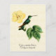 Postkarte mit einer Vintagen Abbildung der Naturgeschichte von Antoine-Germain Bevalet, c.) Ein hellgrüner Kolibri mit weißer Brust und Schwanz steht auf einer Pflanze aus gelbem Hibiskus, mit einem hellgelben Pergamentgeflecht. Digital gereinigt und verbessert, wobei die Vintagen Eigenschaften erhalten bleiben. In dekorativen Schriftart finden sich gemeinsame und wissenschaftliche Namen. Übereinstimmende US-Porto-Briefmarke verfügbar.