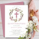 Cette élégante invitation à la confirmation de couronne fleurie présente un design magnifique parfait pour célébrer cette occasion spéciale. Fleurs délicates et verdure créent un look sophistiqué et intemporel, ce qui en fait l'endroit idéal pour une cérémonie de confirmation. La palette de couleurs douces ajoute une touche d'élégance, tandis que le texte personnalisable vous permet de personnaliser l'invitation à votre événement. Partagez la joie de cette étape avec votre famille et vos amis en envoyant ces adorables invitations.