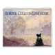 Un paysage d'aquarelle différent de Susan Alison illustre chaque mois. Un chien de la Frontière collie regarde la campagne dans sa vue. La vie est bonne !