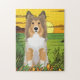 Collie Hund auf einem Feld mit Blumen auf einem Bauernhof. Viele Haustier- und Landschaftsbilder in meinen Geschäften. Dieses Design anderen Produkten hinzufügen. Text hinzufügen.