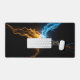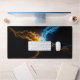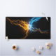 Une visualisation de haute conception, abstraite et photoréaliste de la découverte scientifique et de la synthèse chimique. Dans un vide sombre et infini, deux flux lumineux remplis de particules (l'un d'or brillant, l'autre d'un bleu électrique) entrent en collision au centre. Au point d'impact précis, ils forment une structure moléculaire géométrique complexe et complexe, à mi-réaction gelée. La lumière éclatante de la collision illumine la scène, créant une métaphore visuelle dynamique et impressionnante pour l'innovation, la chimie et la beauté de la création. Idéal pour des projets conceptuels, scientifiques ou futuristes.