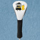 Do you like cute golf head covers? This golf head cover features a gray cat wearing a black and yellow color guard outfit with a yellow flag.