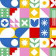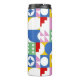 This colorful water bottle features a bold, modern geometric pattern that instantly stands out. Each square on the bottle showcases a different playful shape—circles, petals, lines, and abstract motifs—arranged in a lively mosaic of red, blue, green, yellow, pink, and white. The bright, high‑contrast palette gives it a cheerful, artistic vibe, while the sleek black top adds a clean, contemporary finish. It’s a fun, expressive accessory for staying hydrated in style.