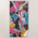 Dynamic abstract composition with bold splashes of pink, blue, yellow and black layered over textured white strokes. Energetic paint drips and spontaneous brush marks create a vibrant contemporary artwork full of movement, contrast and urban expression.