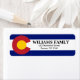 Colorado Flag Name City Street Label. Colorado State Flag Moderne Rücksendeadressen-Aufkleber. Passen Sie Ihren eigenen Text an oder löschen Sie den Text und drucken Sie ihn auf Zuhause. Großartige Adressetiketten für Ihre Familie, Ihr Unternehmen oder Ihre Veranstaltung.