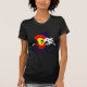 Das Material ist eigentlich gute Qualität, der Stoff ist nur etwas verzogen so dass der Drück leicht schief aussieht. Der Druck ist gute Qualität, habe das T-Shirt schon einige male gewaschen.