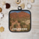 Mit diesem Topfhalter mit schwarzem Trimm, der ein landschaftliches, fotografisches Bild der roten Felslandschaft im Western-Staat von Colorado bietet, können Sie Backfächer, Kochplatten und Muffin-Dosen aus dem Ofen sicher handhaben. Ein tolles Reise-Souvenir-Geschenk! Wählen Sie den Trägerstil Ihres Potwarters aus.