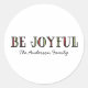 Charmant et amusant Colorful Be Joyful Stickers de vacances avec un design de typographie rouge et vert tendance dessiné à la main. Ces autocollants simples mais fantaisistes peuvent être facilement customisés un accueil de Noël personnalisé. Pour plus d'options de personnalisation, cliquez sur Customiser.