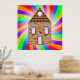 Ein Backsteinhaus umgeben von farbenfrohen Regenbogenfarben. Dieses Design sieht wirklich effektiv aus auf diesem Poster