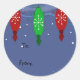 Ein großartiges Design mit rot-grünen Hängelchen und Schneeflocken-Design. Ein blauer Hintergrund mit fallendem Schnee.