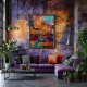 Este collage abstracto combina una paleta de colores vibrantes con una variedad de formas y texturas para crear una composición dinámica y llena de energía. Los tonos de naranja, azul y púrpura se entrelazan para formar una obra de arte moderna que aporta vitalidad a cualquier espacio. Ideal para los amantes del arte contemporáneo, este diseño es perfecto para añadir un toque de creatividad y movimiento a tu hogar.
