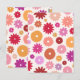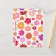 Colorful flower pattern in yellow, orange, pinks, lilac and reds on a cream color background.