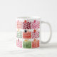 Brighten your holidays with this cheerful Christmas mug featuring a fun watercolor pattern of wrapped presents in festive red, pink, and green tones. Each gift box is decorated with charming stripes, dots, and ribbons for a joyful handmade look. Perfect for coffee, cocoa, or tea during the holiday season — and a delightful gift idea for friends, family, or coworkers who love colorful Christmas designs.