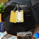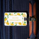 Colorful personalized citrus lemon patterned luggage tag on colorful white background. Customize with your own name and contact details. Please contact me if you require further help with personalization. Original artwork from artists own digital artwork. © Zoe Chapman Design