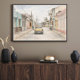 Bring timeless charm and nostalgic elegance into your space with this vintage Havana street watercolor painting, inspired by the iconic architecture and everyday life of historic Cuba. This artwork features a classic old car parked along a colorful colonial street, surrounded by pastel-toned buildings, textured facades, and delicate overhead wires that evoke authentic Old Havana city vibes.
