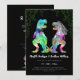 Funny Dinosaur Black and White Jurassic Wedding Invitation colorful psychedelic T-Rex Bride and Groom | Modern Jungle Theme with QR Code RSVP