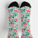 Revamp your wardrobe with our new sock design! These socks feature a vibrant mix of tropical flowers, green leaves, pink flamingos, and tropical birds in a seamless pattern. The changeable white background adds versatility to your fashion choices.