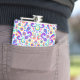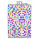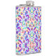 Colorful flask with a vibrant pattern of paisley, flowers, and stars in blues, pinks, and yellows on a white background, evoking a playful and retro vibe.