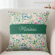 Add a fresh pop of personalized charm to your space with this floral name throw pillow. Featuring a lively botanical pattern filled with pink, blue, and yellow blossoms, this pillow brings brightness and warmth to any room. The deep green band across the center creates a clean, tailored contrast while highlighting the personalized name in graceful script for a polished, custom look. Perfect for sofas, beds, reading nooks, or guest rooms, this throw pillow blends cheerful florals with classic personalization—making it both decorative and meaningful.