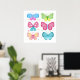 This cheerful picture shows six colorful butterflies with fun patterns on their wings. Each butterfly is different—some have polka dots, stripes, or swirls—and they all look like they're having a playful party in the sky!