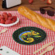 Foto is my original painting. This colorful smiling abstract lizard is hanging on branch with a large leaf at the end. Fun for kids. He is done in greens, blues, yellows, and orangen. See my store Art by MAR for matching products with this design.