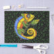 Foto is my original painting. This colorful smiling abstract lizard is hanging on branch with a large leaf at the end. Fun for kids. He is done in greens, blues, yellows, and orangen. See my store Art by MAR for matching products with this design.