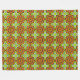 Colorful geometric mandala pattern in orange, green, and blue displayed hanging on a rod and flat on a surface, showing texture.