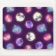 Unterschiedlich cute and colorful bats in a non directional all-over halloween pattern wir haben dark purple background. One bat is inside a glowing jack-o-lantern pumpkin, one is flying over a full moon, one is flying past a crescent moon with a witch hat und the last one is a cute skeleton bat in front of a gravestone.