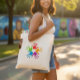 "Celebrate connection, creativity, and community with our vibrant Rainbow Handprint Circle Tote Bag! This eye-catching design features a joyful circle of multi-colored handprints, symbolizing unity, diversity, and collective spirit. It's a perfect expression of friendship, teamwork, and inclusive values.
